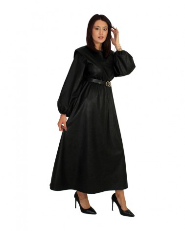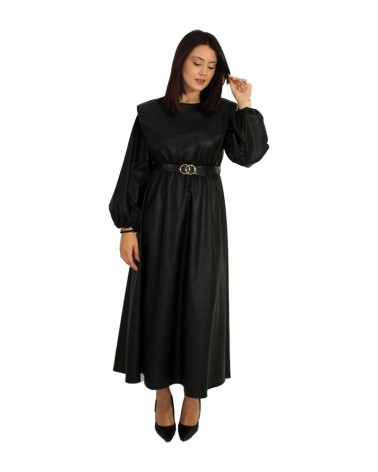 Vestito a campana ecopelle nero