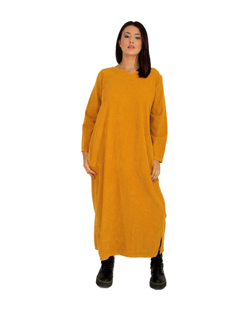Il velluto a costine è uno dei tessuti must have per le stagioni autunno/inverno 2020-21 ed è il protagonista anche di molti capi delle collezioni Mior. Questo abito lungo è disponibile in ben quattro colorazioni: verde, giallo, marrone e nero.