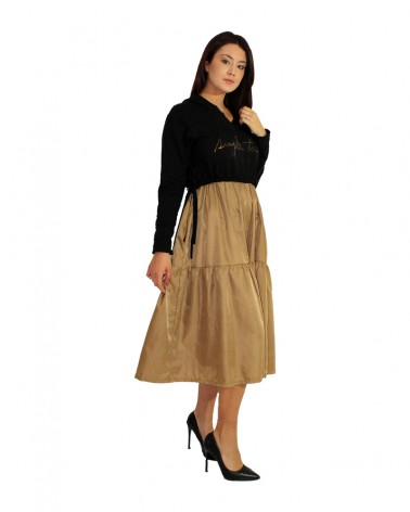 Vestito lungo felpa e tessuto oro