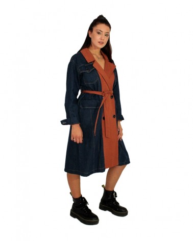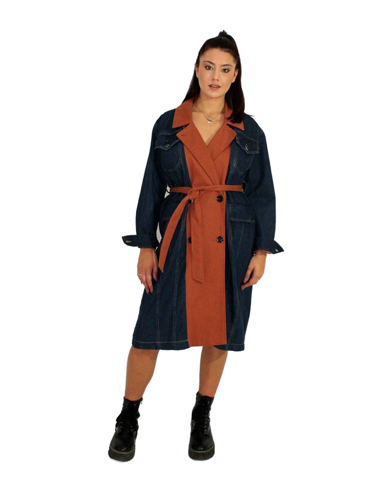 Giacca trench jeans ed ecopelle