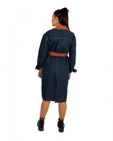 Realizzato in jeans con inserti in ecopelle effetto martellato, questo fantastico trench ti avvolgerà in un caldo abbraccio durante le tue passeggiate autunnali o primaverili. Ideale da abbinare ad un look casual o da giorno.