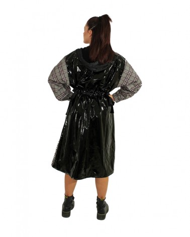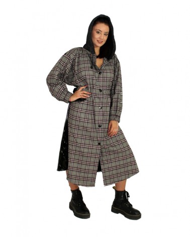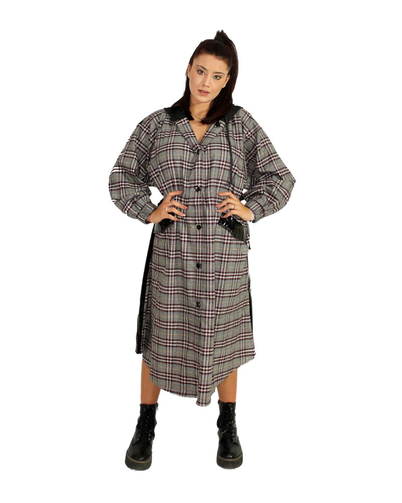 Un look giovane e street con questo trench decorato in tartan dalle linee bordeaux, beige e nere.