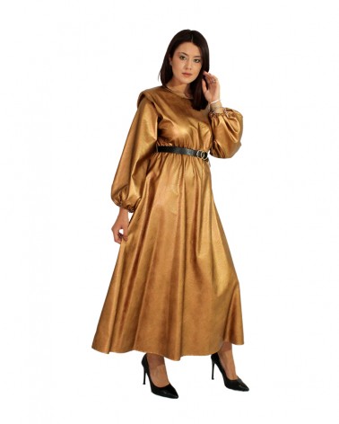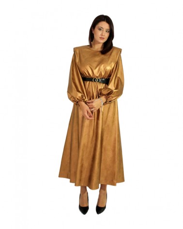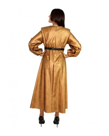 Un vestito ampio a campana realizzato in morbida ecopelle.