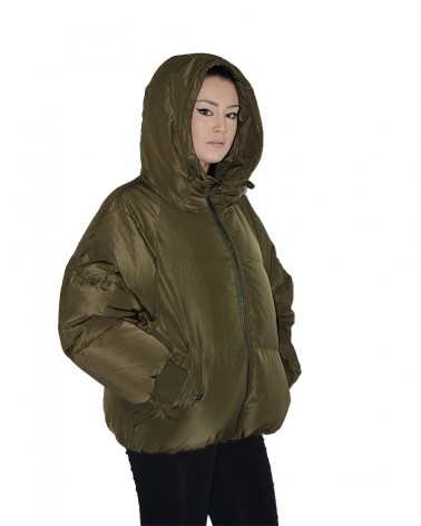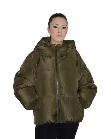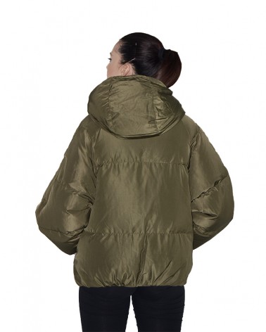 Bomber oversize resistente all'acqua con cappuccio regolabile verde militare .
