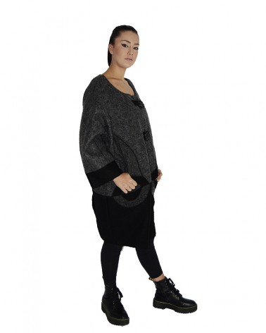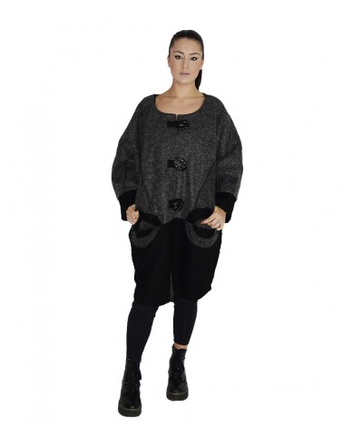 Cappotto oversize è realizzato in calda misto lana, con la classica abbottonatura con alamari e bottoni neri.