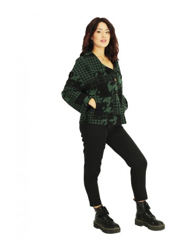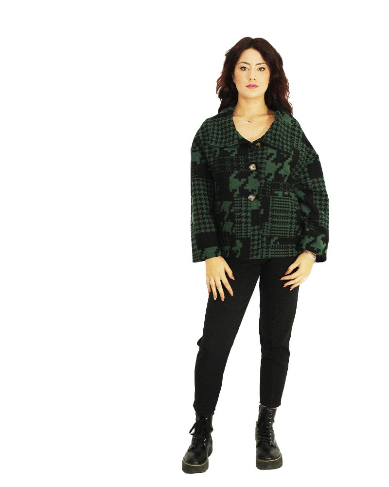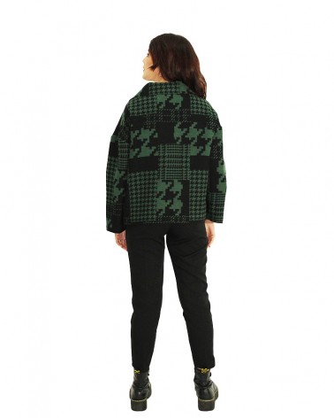 Giacca misto lana decorazione patchwork a contrasto, disponibile in due colorazioni: bianco e nero, verde e nero.